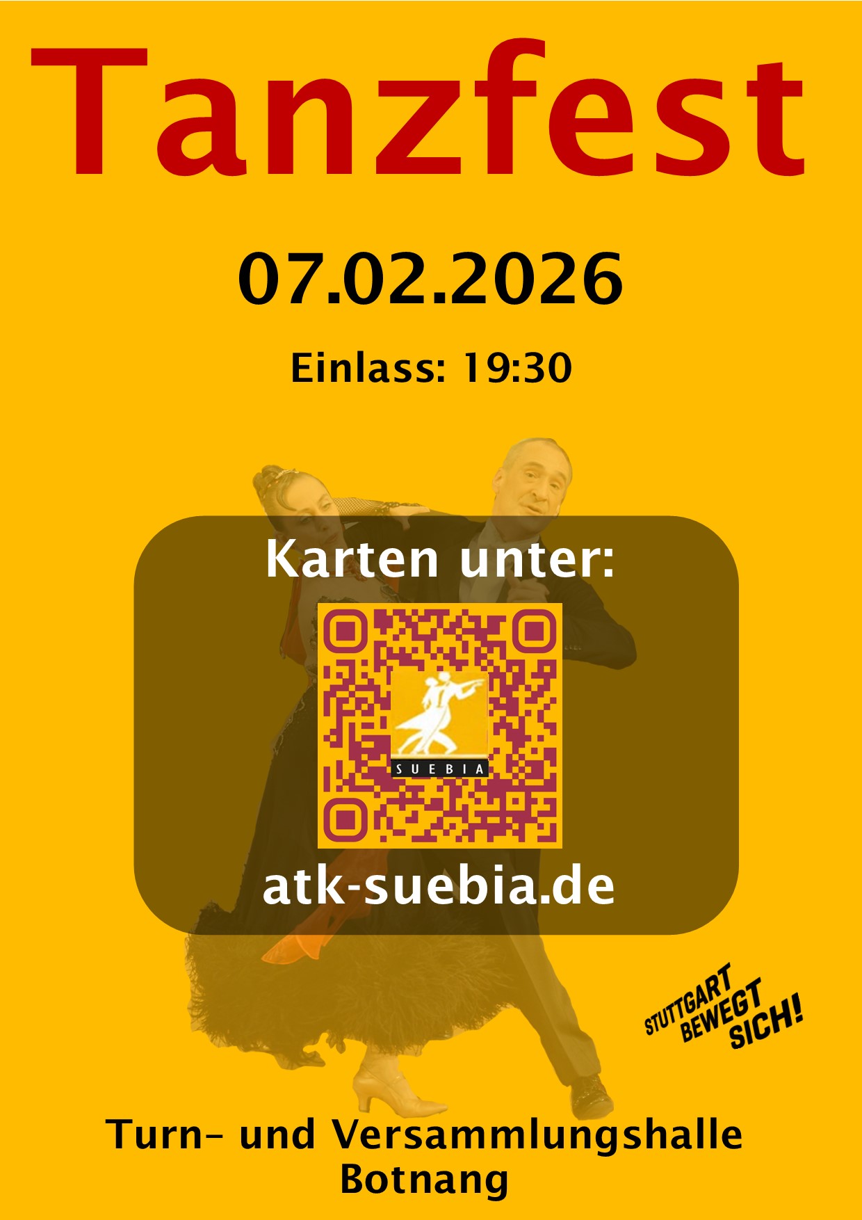 Als Auftakt zum Jubiläumsjahr des ATK Suebia Stuttgart fand am 1. Februar 2025 ein Tanzturnier mit anschließendem Tanzfest in der Turn- und Versammlungshalle in Stuttgart-Botnang statt. Gleichzeitig war das Tanzfest eines der zahlreichen Highlights im Rahmen des 950jährigen Jubiläums von Botnang.